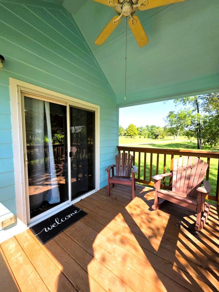 The cottage over looks both Blue Bird and Mockingbird Pond and has a view of the garden behind the Grand Lodge. The outdoor area includes a front and back deck, patio furniture, gas grill, and ring fire pit.